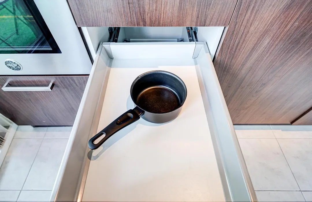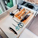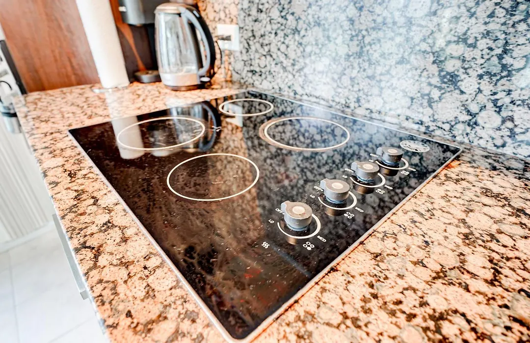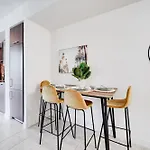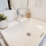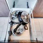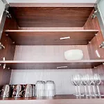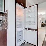 Naast koffie- en theevoorzieningen heeft dit appartement een ingerichte keuken met een magnetron, een waterkoker en een koelkast.